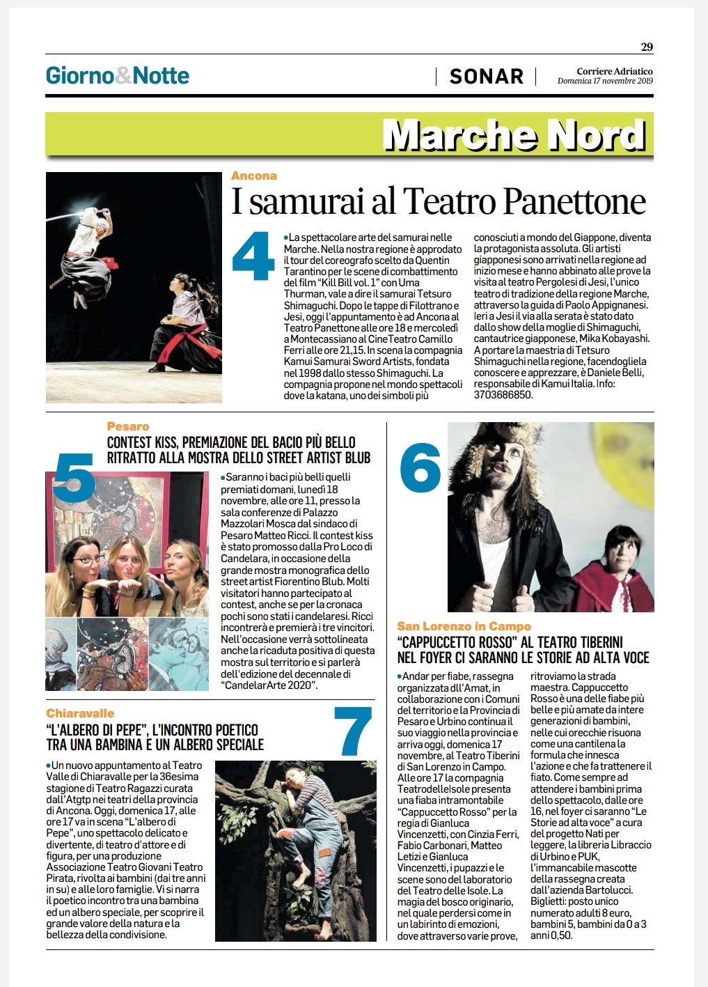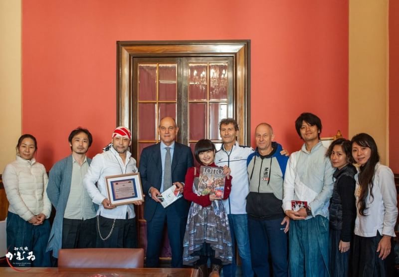 The Kamui/Kigido group is currently performing, filming, and conducting workshops in the Marche region of central Italy, and their activities have been well received by the local media.