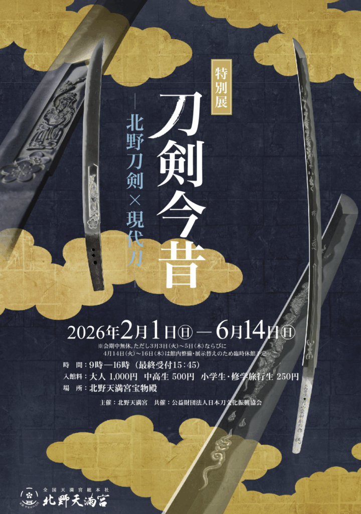 なんとこの刀は 4月半ばから6月まで、京都の北野天満宮【刀剣今昔】にて展示されます